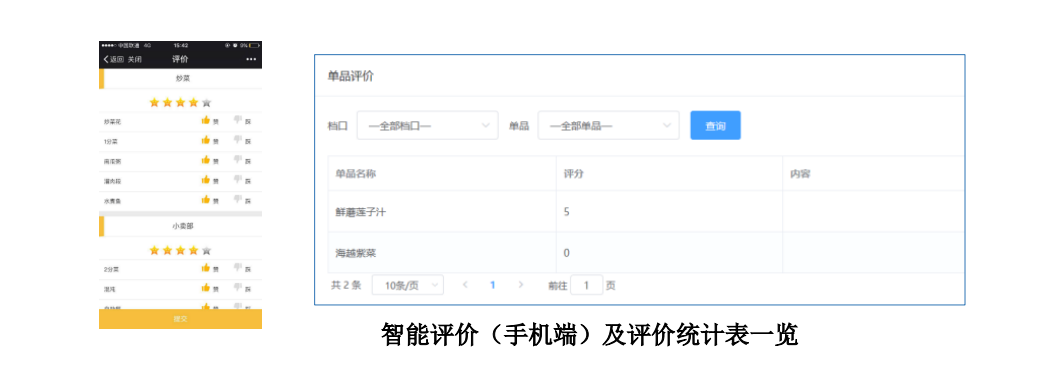 智能評(píng)價(jià),使員工就餐后可在網(wǎng)上直接評(píng)價(jià)菜品質(zhì)量,通過(guò)統(tǒng)計(jì)分析,助力于食堂隨時(shí)聆聽(tīng)員工建議、不斷優(yōu)化菜譜結(jié)構(gòu)與服務(wù)模式,合理備餐、精準(zhǔn)運(yùn)營(yíng)。