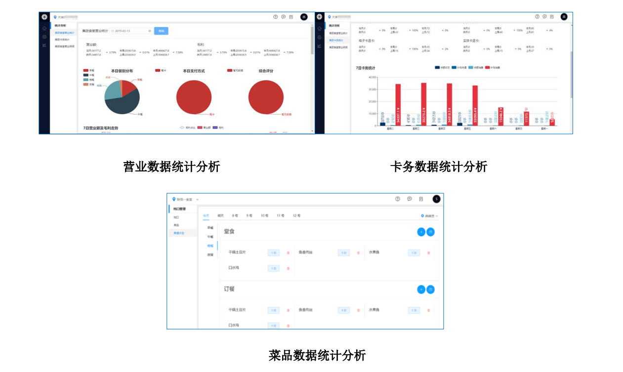 數(shù)字化大屏,數(shù)據(jù)指標(biāo)實(shí)時(shí)呈現(xiàn),實(shí)時(shí)關(guān)注經(jīng)營(yíng)的收益和風(fēng)險(xiǎn),可對(duì)顯示數(shù)據(jù)模塊通過(guò)后臺(tái)進(jìn)行調(diào)整,通過(guò)可視化報(bào)表、視頻、報(bào)警數(shù)據(jù)等實(shí)時(shí)掌握食堂運(yùn)營(yíng)情況。